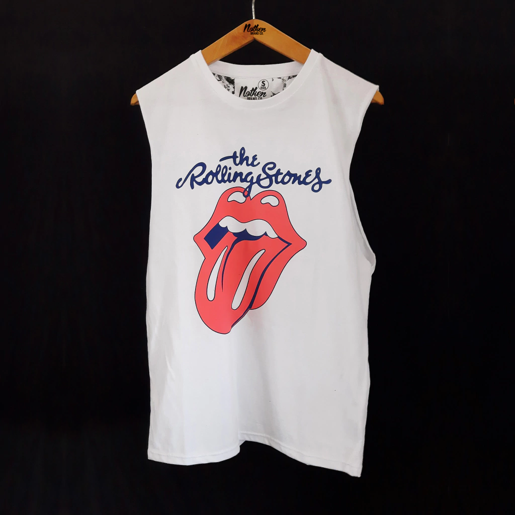 Remera blanca sin mangas 100% algodon 24/1 peinado con estampa en serigrafia.